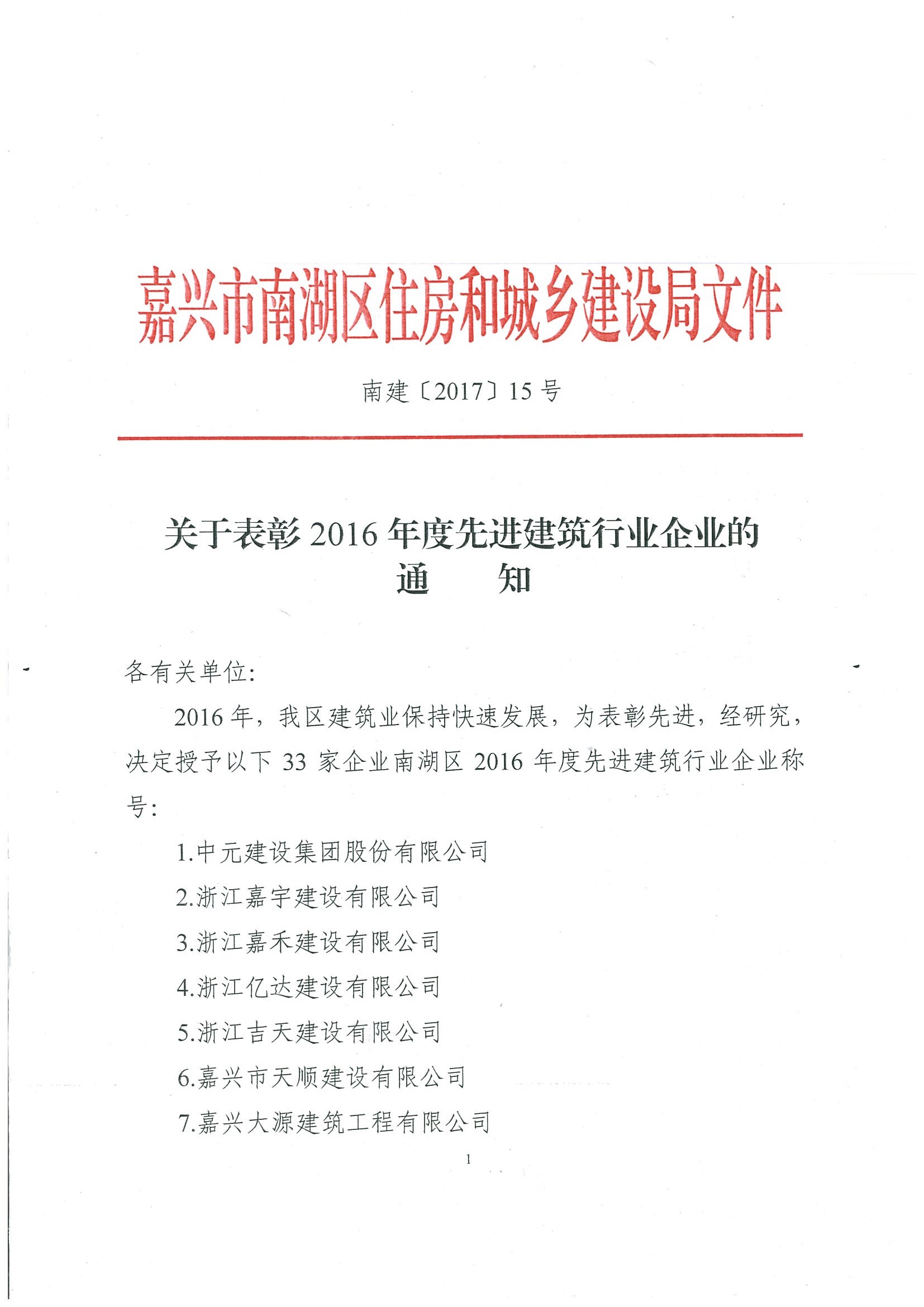 2017年度先進建筑行業企業