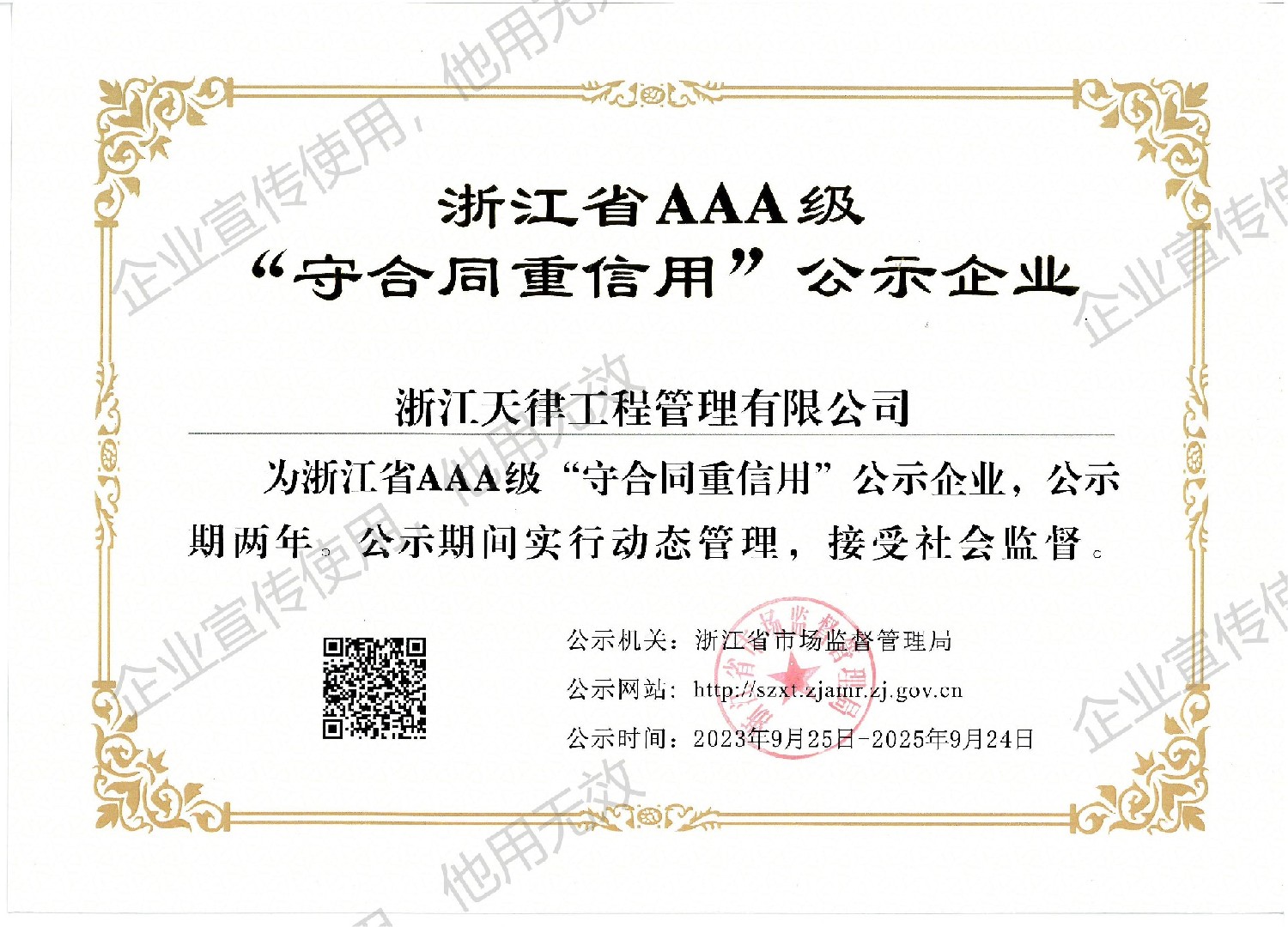 浙江省AAA級(jí) “守合同重信用”公示企業(yè)