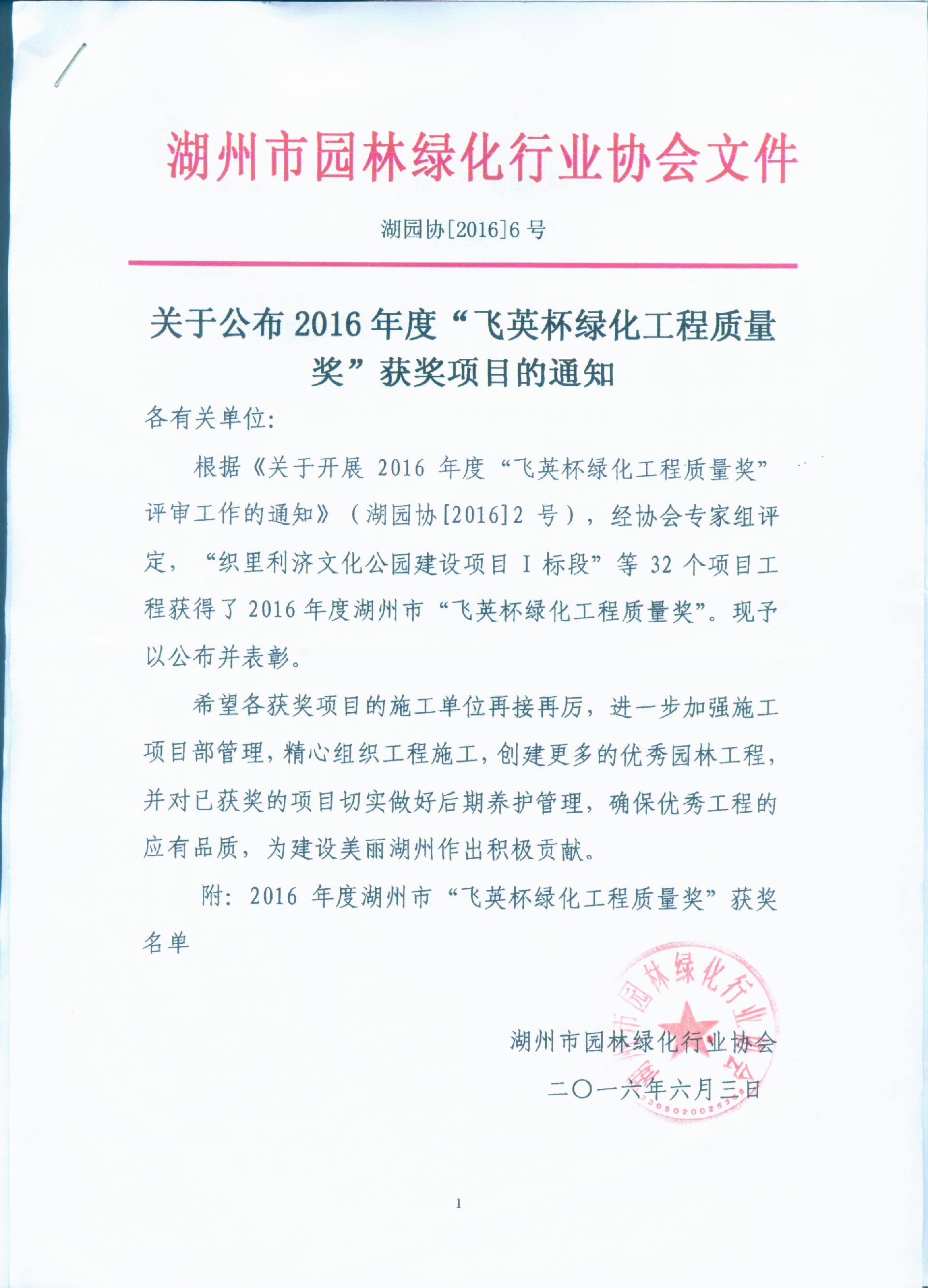 2016年度湖州市綠化飛英杯