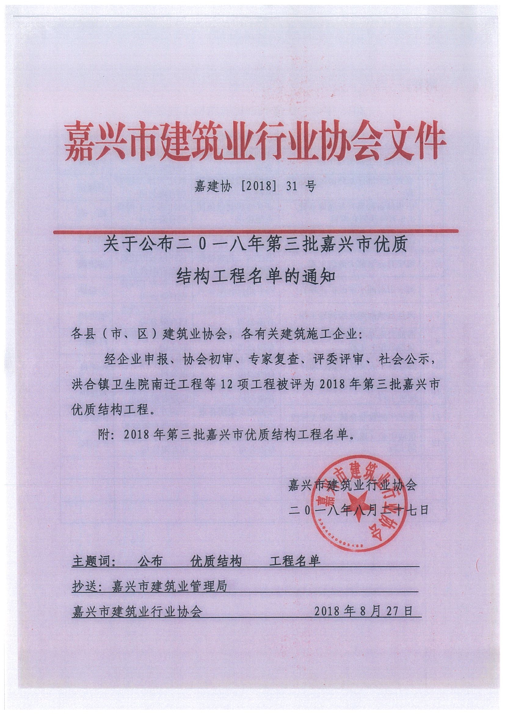 2018年嘉興市第三批優質結構