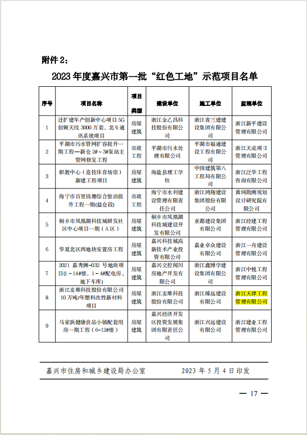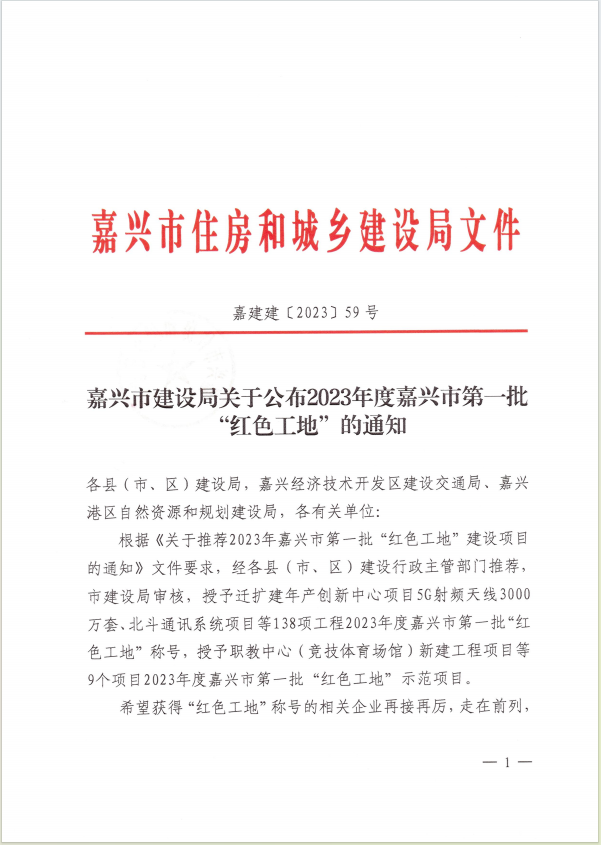 2023年度嘉興市第一批紅色工地