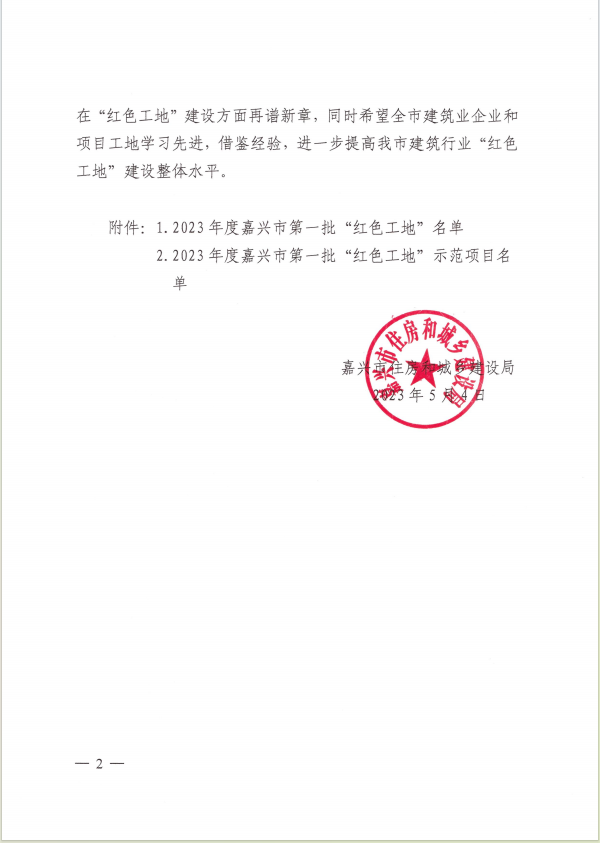 2023年度嘉興市第二批紅色工地