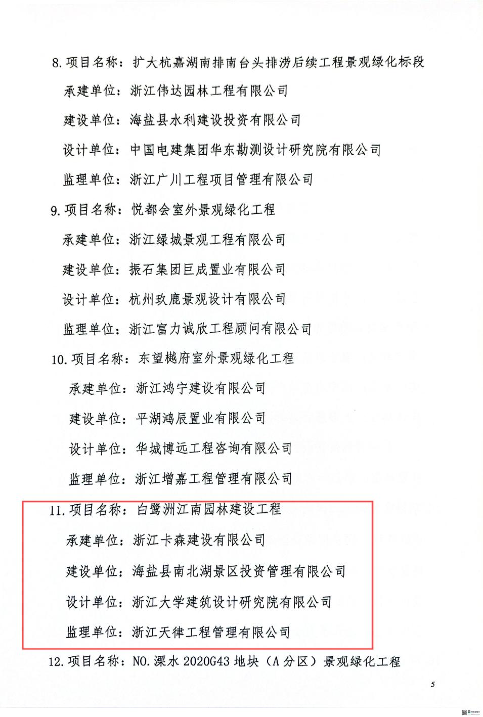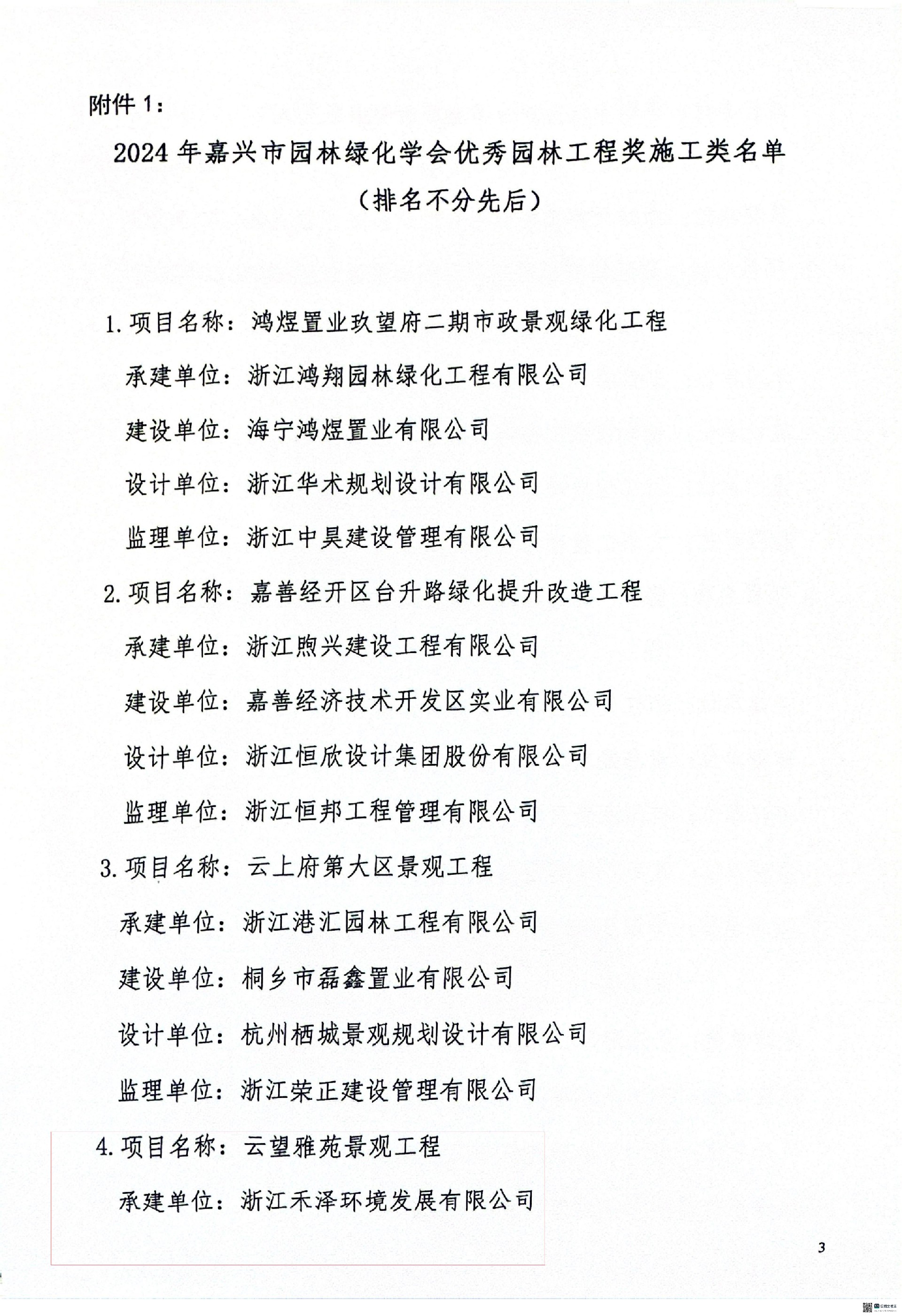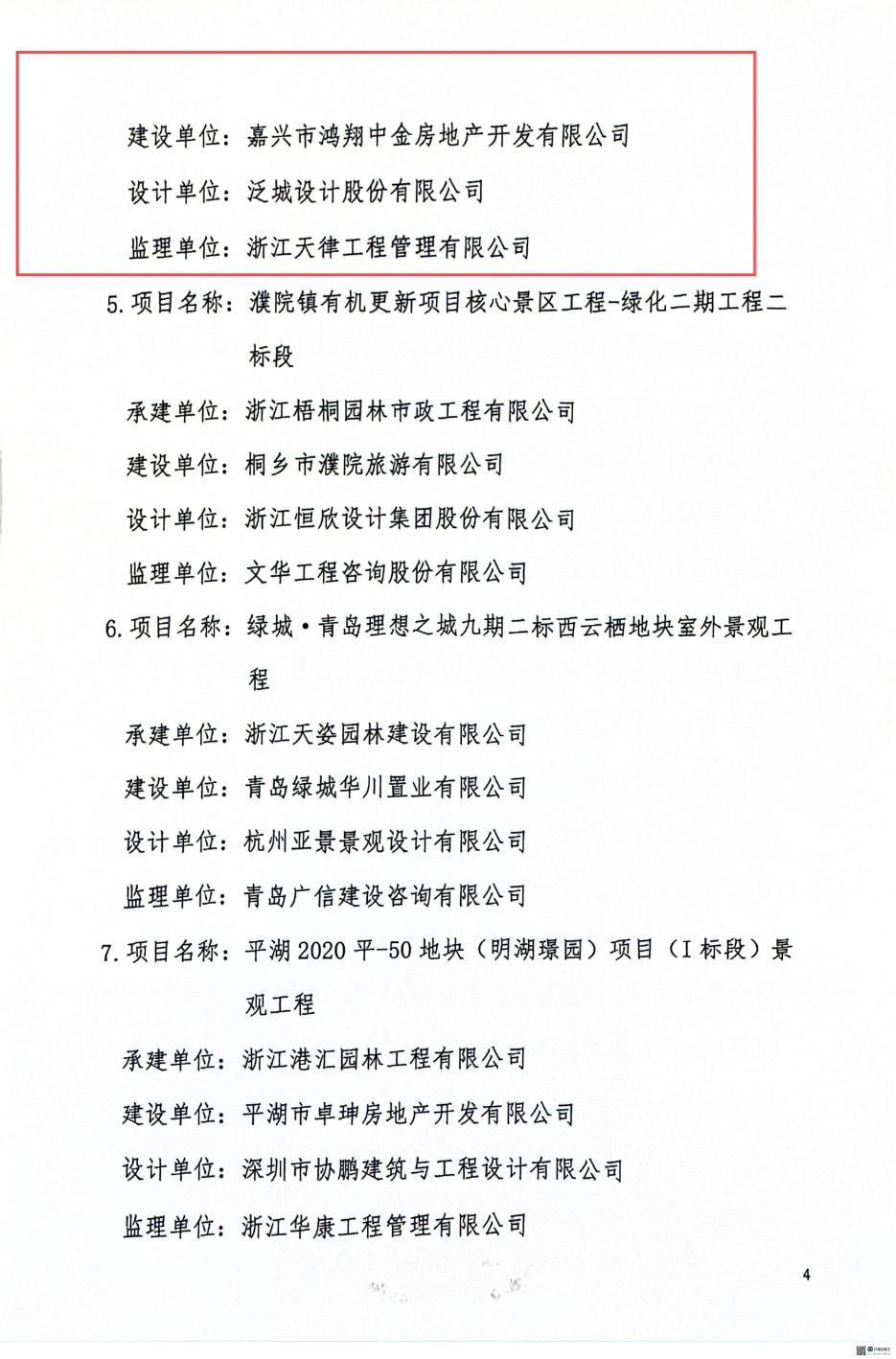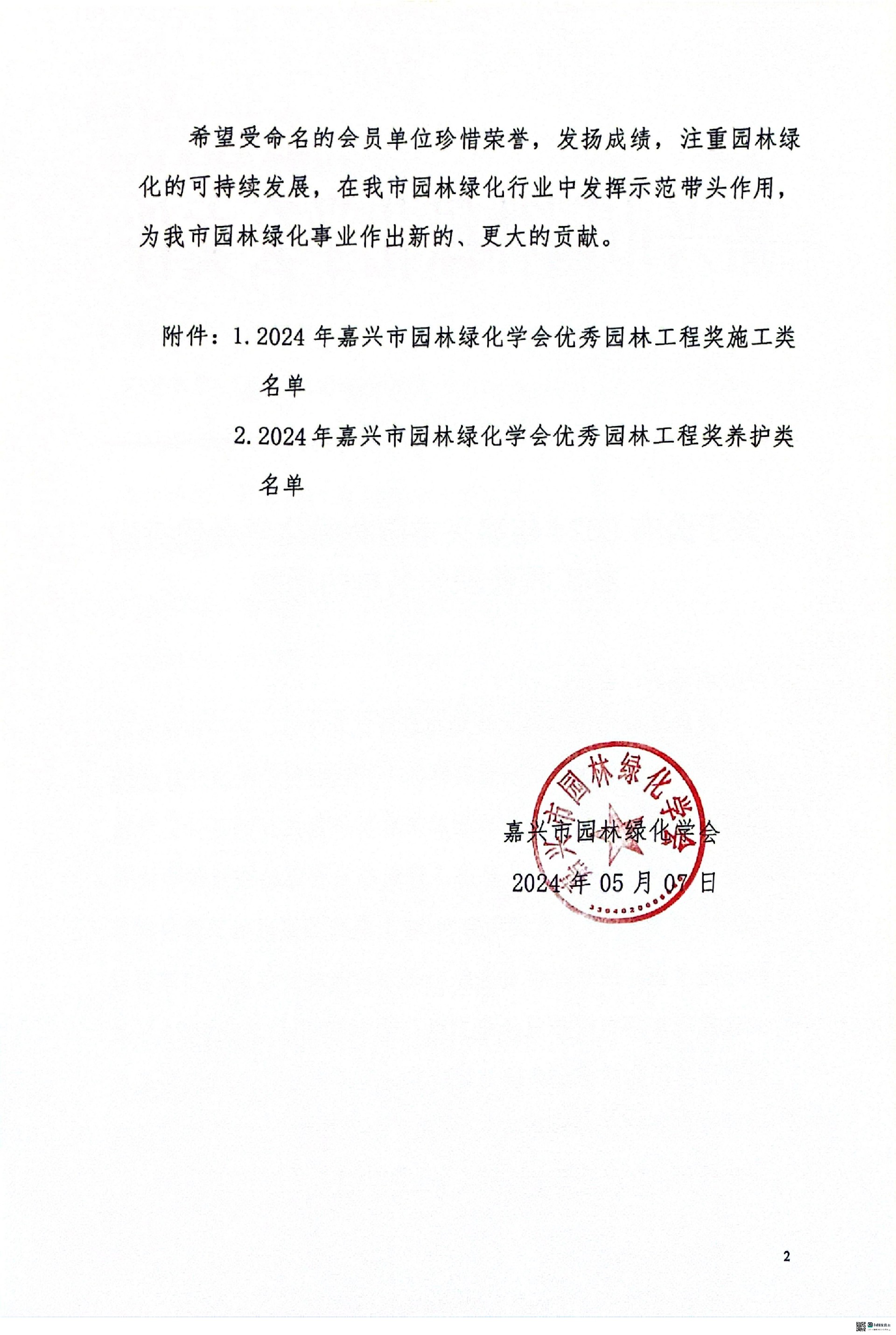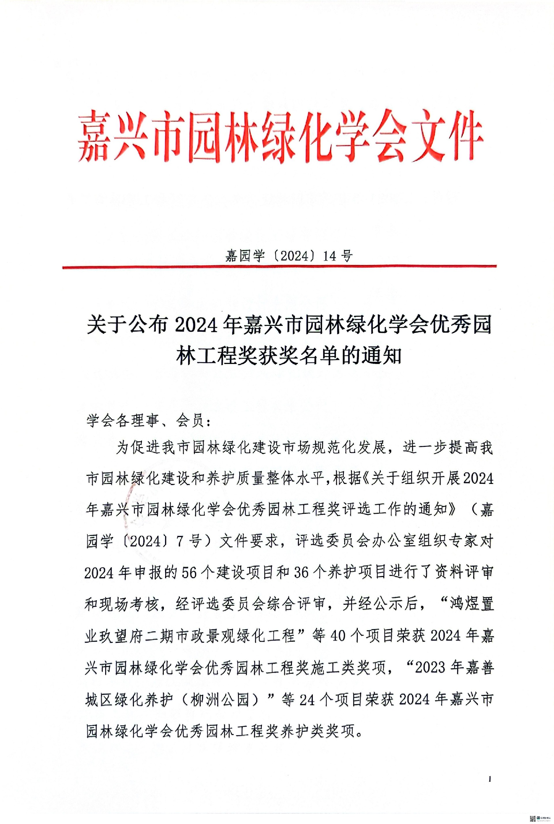 2024年嘉興市園林綠化學會優秀園林工程