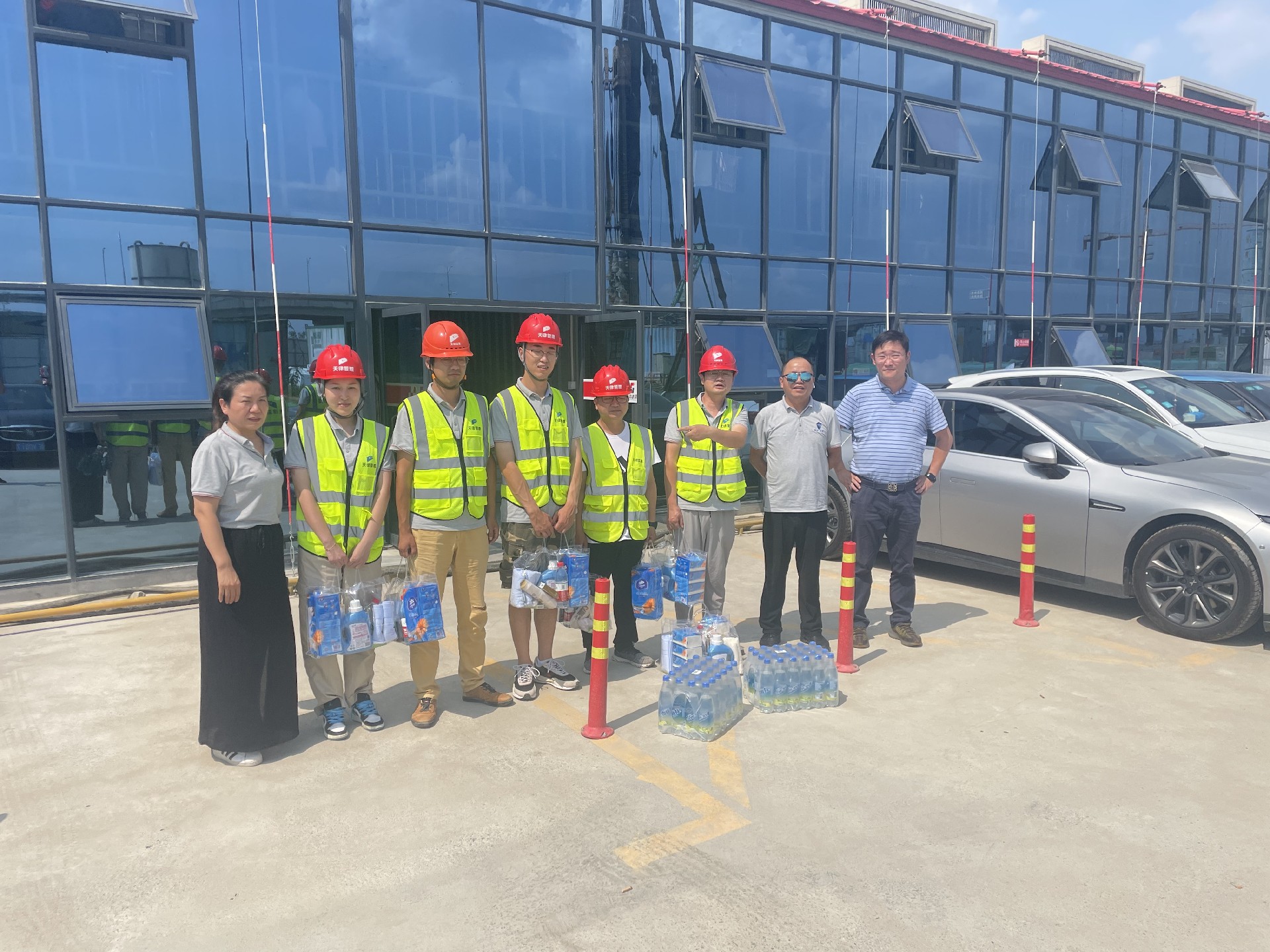 最后,吳總經(jīng)理為在場(chǎng)的每位監(jiān)理人員發(fā)放了飲料等防暑慰問品,在送去溫暖和關(guān)心的同時(shí),也為抗戰(zhàn)在高溫一線的同事們帶去一份清涼。