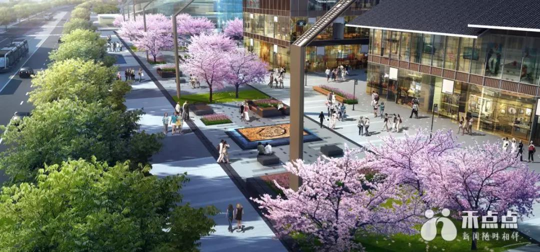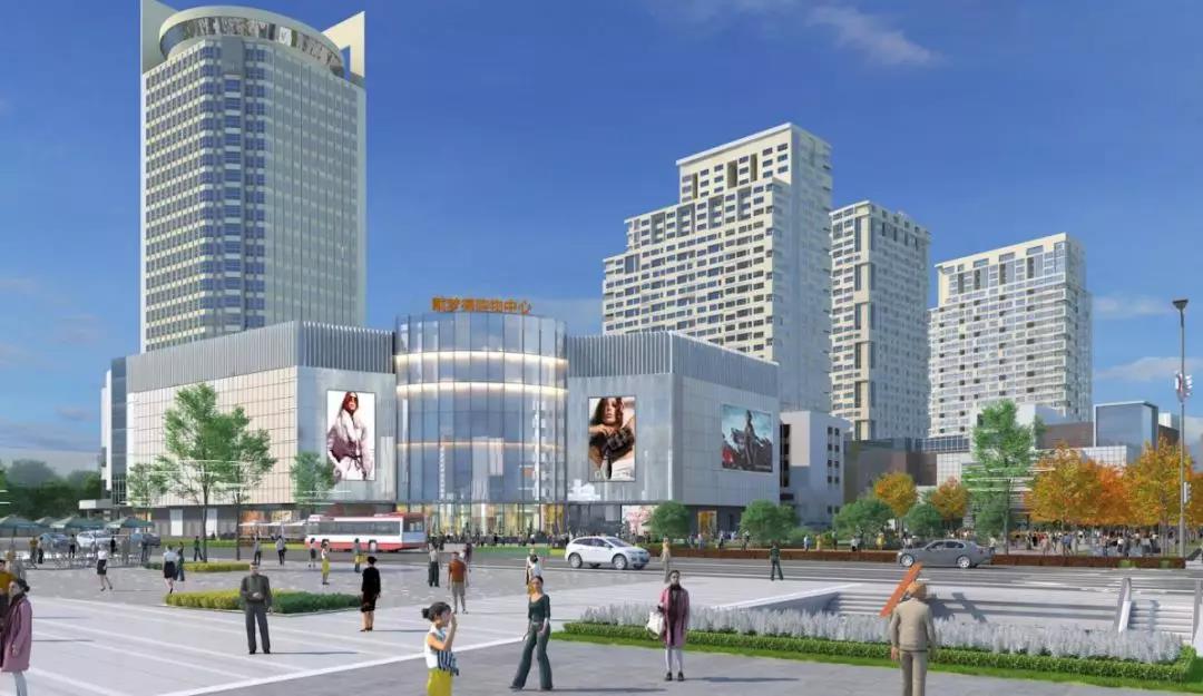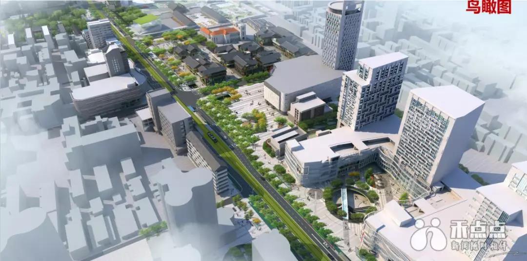 中段(禾興路-建國路)圍繞新的城市公共廣場形成全新的統一立面風格,并結合現有建筑特點,進行創新,突出核心商業建筑,打造為大型商業建筑群;