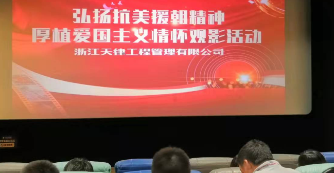 2021年是中國(guó)共產(chǎn)黨建黨100周年,也是中國(guó)人民志愿軍抗美援朝出國(guó)作戰(zhàn)71周年。為扎實(shí)推進(jìn)黨史學(xué)習(xí)教育,弘揚(yáng)偉大的抗美援朝精神,緬懷為保家衛(wèi)國(guó)犧牲的革命先輩。近日浙江天律工程管理有限公司黨支部和工會(huì)聯(lián)合組織了“弘揚(yáng)抗美援朝精神,厚植愛(ài)國(guó)主義情懷”的觀影活動(dòng)。組織黨員職工集中觀看了以真實(shí)事件為背景改編的愛(ài)國(guó)主義教育題材電影《長(zhǎng)津湖》。